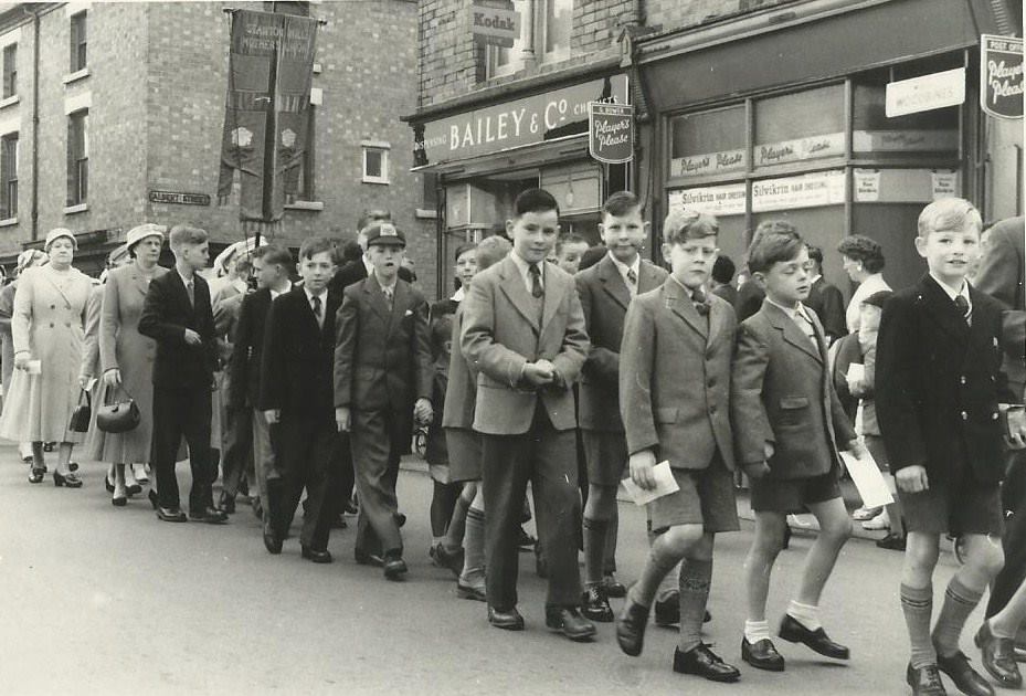 Whitsuntide Walk c1953 On High Street, passing Morley Street