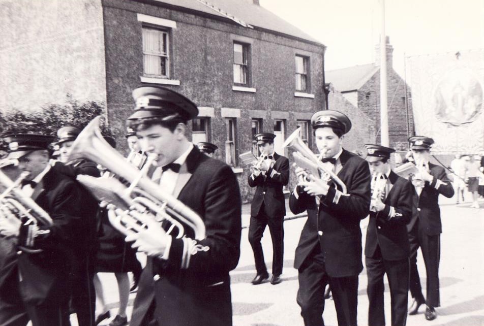 Bottom of Institute Street led by Teversal Colliery Band ![]() |